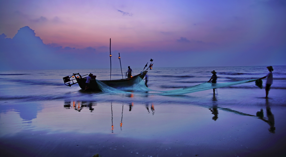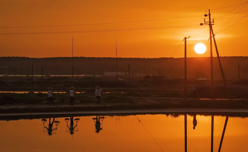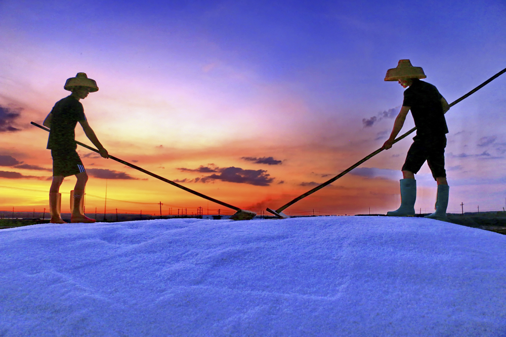 徐聞鹽場,廣東四大國有鹽場之一,也是最大的一個(gè),位于雷州半島西部背風(fēng)坡地帶,氣溫高,日照時(shí)間長,蒸發(fā)量大(年均蒸發(fā)量為1918.1毫米),加之地處半島的尾閭部位,地表入海徑流量少,使得近岸海水的鹽度較高,近岸海水的鹽度達(dá)到27.5‰以上;泥沙較少、無污染,是理想的曬鹽、煮鹽場所,適宜大面積海水灘曬制鹽。